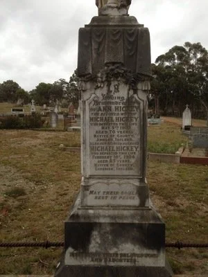 Hickey’s life appears to have been consumed with local matters. He was a founder or member of the local cricket, football and tennis clubs, an advocate for community matters through his membership of the Road Board, the Shire Council and his role as a Justice of the Peace, amongst other positions. When he died at the age of 83 from senile decay, having been blind with cataracts for 11 years, Tallarookians were truly saddened so that “from far and near they assembled at very short notice and the mournful procession was one of the largest seen in the district.” [5]